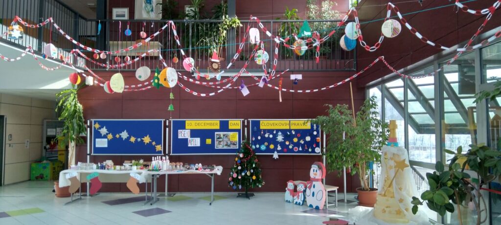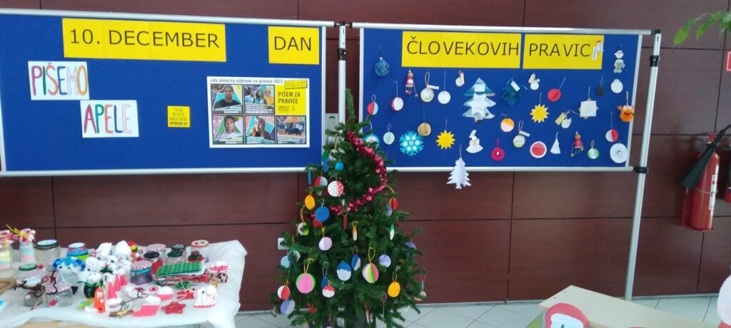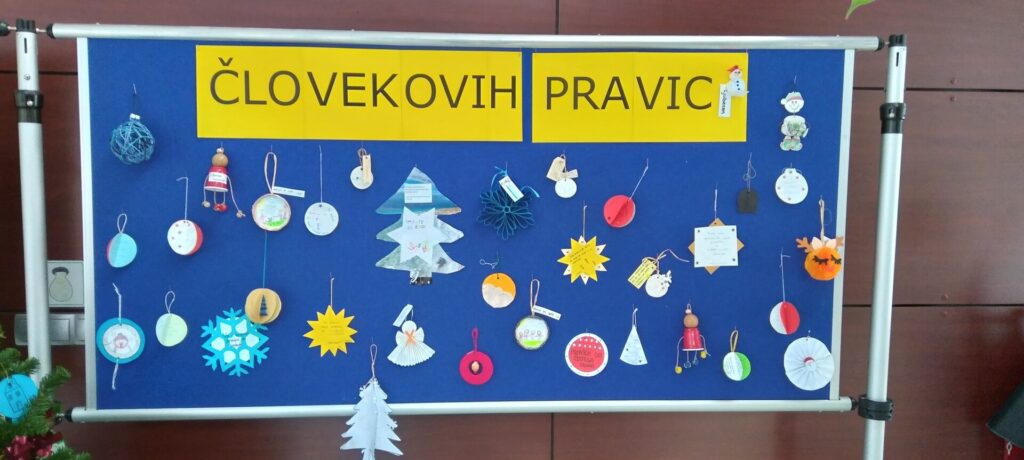 Letošnje leto so učenci ustvarjali novoletne okraske, na katere so zapisali ali narisali pripadajoče pravice oziroma novoletne želje, s katerimi so osveščali o pomenu uresničevanja in spoštovanja človekovih pravic.