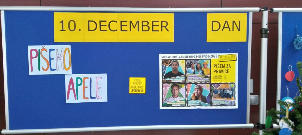 4. Zaželeno je, da projekt meseca decembra aktualizirate še s pisanjem apelov Vsako pero šteje, pod okriljem Amnesty international. Vsa navodila za pisanje najdete na njihovi spletni strani.