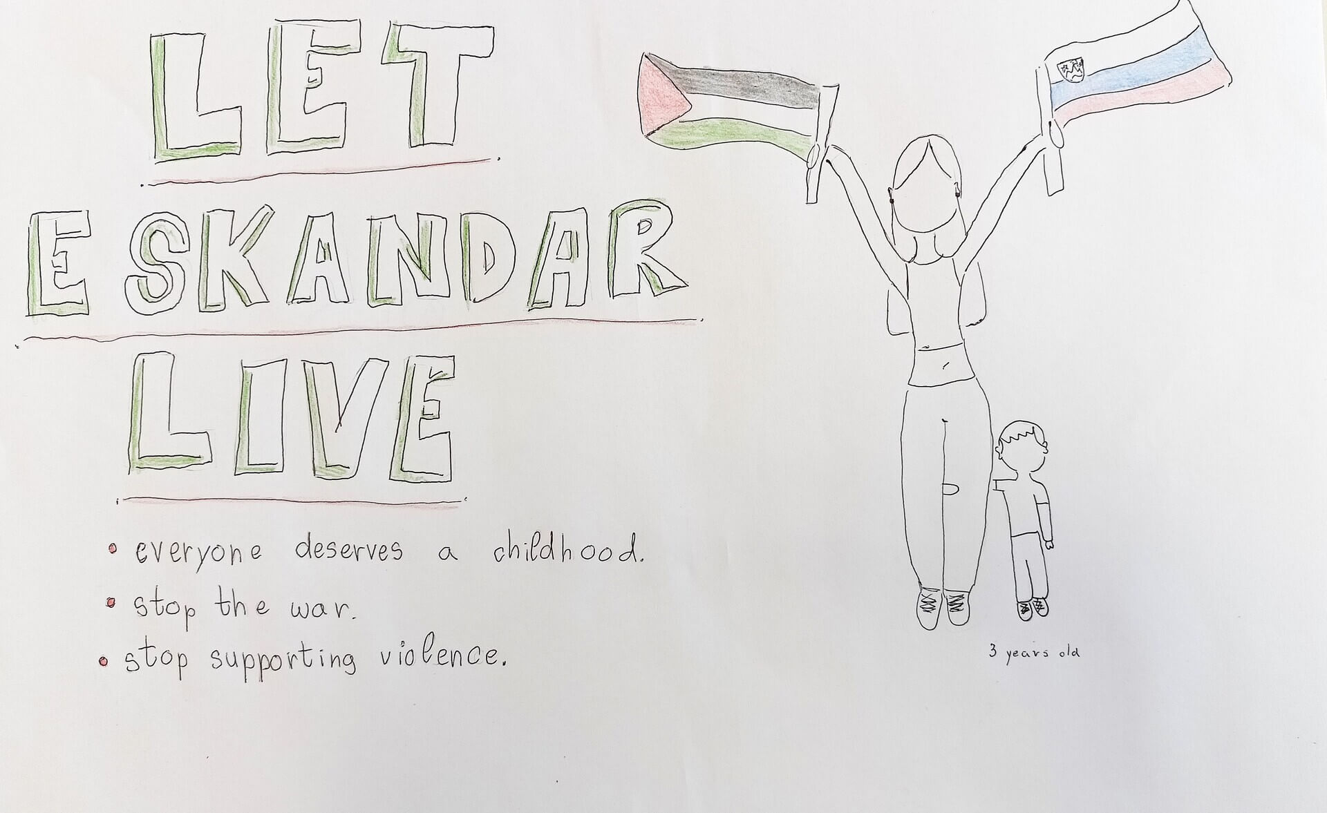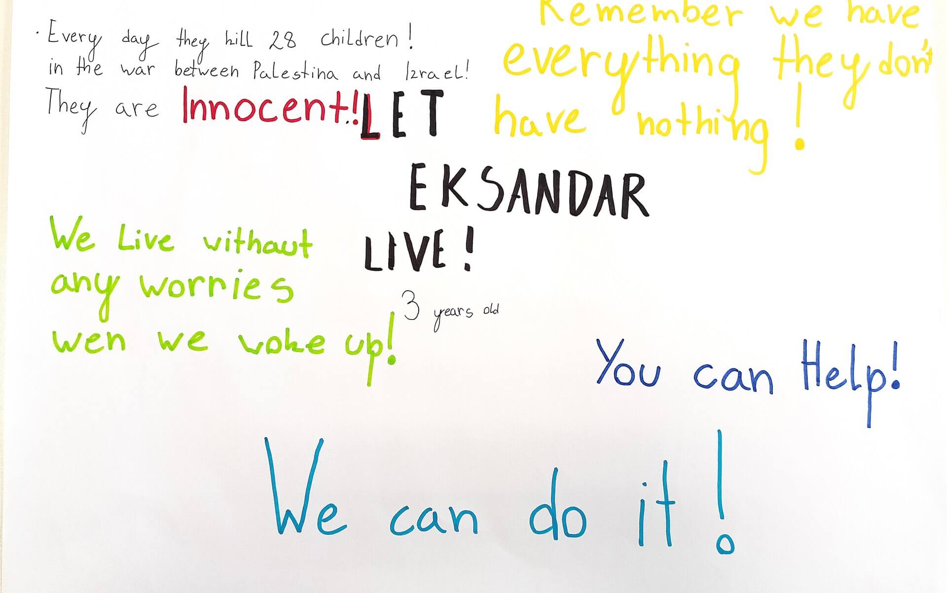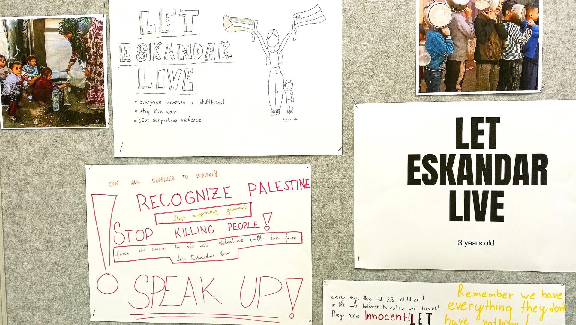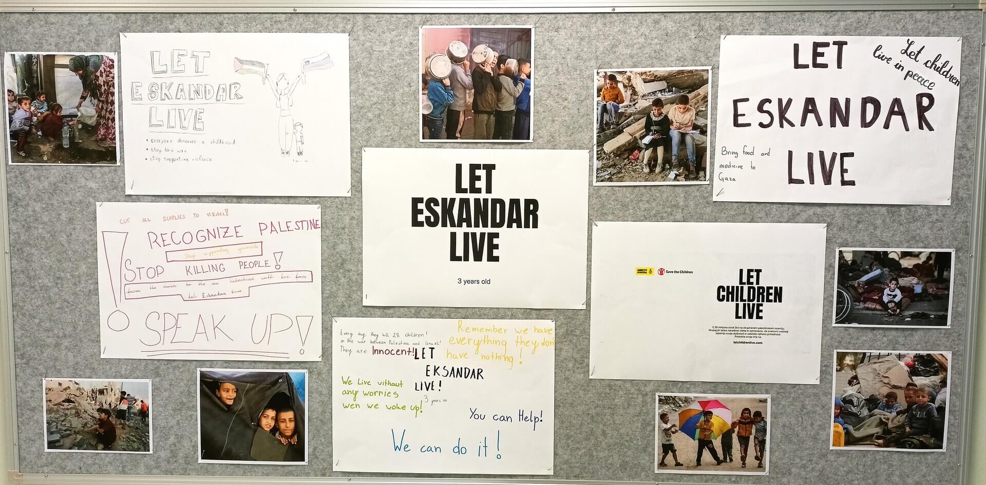 Kot šola smo vzeli pod svoje okrilje ime palestinskega otroka, ki je star tri leta in mu je ime Eskandar. Naj dobi krila vidnosti, solidarnosti in svobode!