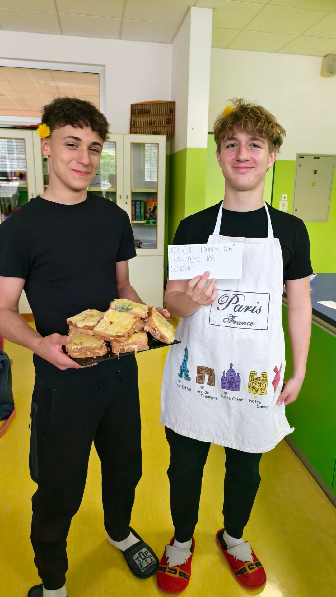 Iz gospodinjske učilnice se je širil prijeten vonj, saj so učenci pripravljali značilne francoske jedi. Ena izmed skupin je pripravila tudi sobo pobega z naslovom Quasimodova uganka. Zelo ustvarjalni so bili tudi učenci nižjih razredov, ki so izdelali čudovite izdelke, povezane s Francijo.