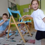 Tokrat so učenci prvih razredov naredili svoja stola za boljše počutje. Na stola so zapisovali, s čim bi si lahko pričarali prijetno klimo v razredu. Postavili smo ju v učilnico 1. a in 1. b razreda, da učence vsakodnevno opominjata na dobra dejanja.